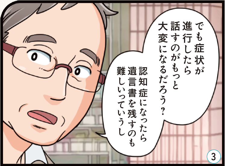 親が認知症と診断されたら、感情的な負担があっても、法的な手続きができなくなる前に(すなわち、早期に)財産や相続について話し合うことが不可欠なのです。